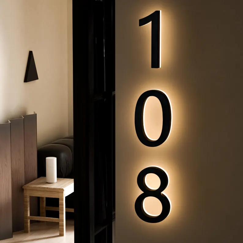 3d Led Lighted House Numbers Signs Illuminated Backlit Stainless Steel House Numbers for Home Sign